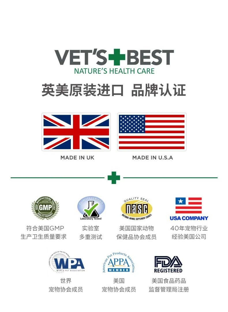 产品与理念领先抢跑,品质与安全同样没有掉队。从品牌成立至今,维倍思始终严格遵守国际标准,在原料、人员、设施设备、生产过程、包装运输、质量控制等方面都达到了法规规定的卫生质量要求,获得了GMP认证。不仅如此,维倍思还加入了美国保健品行业中鉴定产品质量优劣的权威机构美国国家动物营养协会(NASC)、美国宠物用品协会(APPA)、世界宠物协会(WPA)。维倍思的原料和最终产品通过了独立的内部实验室进行的测试,100%保证出现在每个产品标签上的成分标识的真实性。